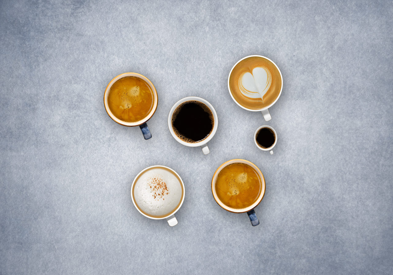 Kaffee schwarz und Kaffeespezialitäten mit Milch
